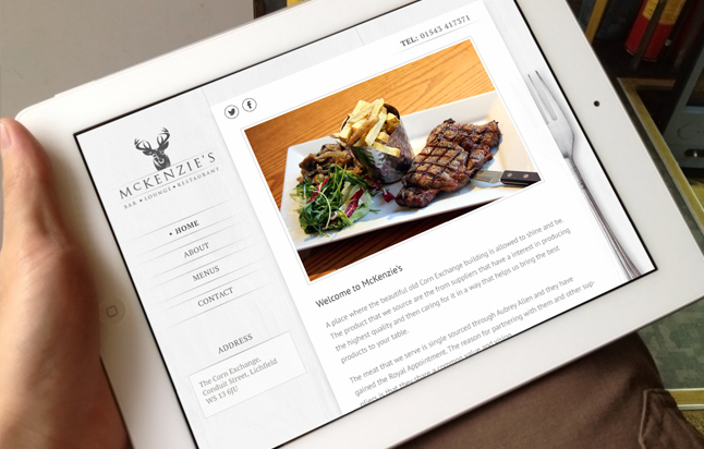 A high quality restaurant in Lichfield, Mckenzies needed a high quality design to match. Taking inspiration from their logo and interior we created a beautiful elegant design. They are able to easily add menu items, show their opening times and keep customers updated.